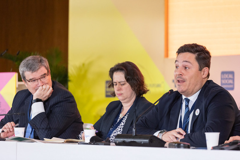 The high-level plenary Territories facing the FfD4 agenda connected directly with the upcoming Fourth Financing for Development Conference (FfD4). Moderated by Emilia Saiz, secretary general of United Cities and Local Governments (UCLG), the session was attended by Eva Granados, Secretary of State for International Cooperation of the Government of Spain; Mauricio Zunino, Vice-President of UCLG and Mayor of Montevideo; Claudio Tomasi, UNDP Resident Representative in Argentina; and Ignacio Corlazzoli, Director of Resource Mobilisation and Global Partnerships at the Development Bank of Latin America (CAF); Ignacio Corlazzoli Hughes, Manager of Resource Mobilisation and Global Partnerships – Development Bank of Latin America (CAF); Anthony Mvo Dighambong, Mayor of Wum and First Vice-President of the United Cities and Councils of Cameroon; Youssouf Benjeloune, Vice-President of ORU-Fogar.